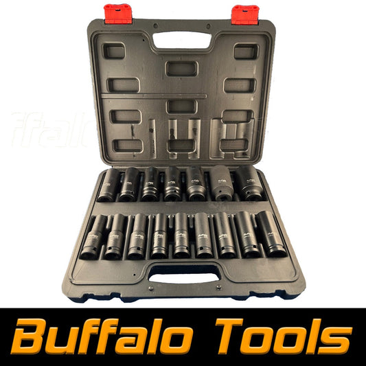 Buffalo Tools Impact Socket Set Deep 16pc 1/2 inch Metric 10mm to 32mm 6 point European Style