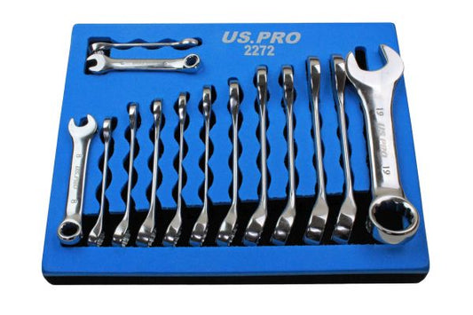 Stubby Spanner Set in Foam Tray 14 pc midget Combination Wrench Spanners 6-19mm