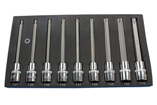US Pro 1/2'' Dr 9 Piece 140mm Long Torx Star TRX Bit Sockets Set T27 - T70