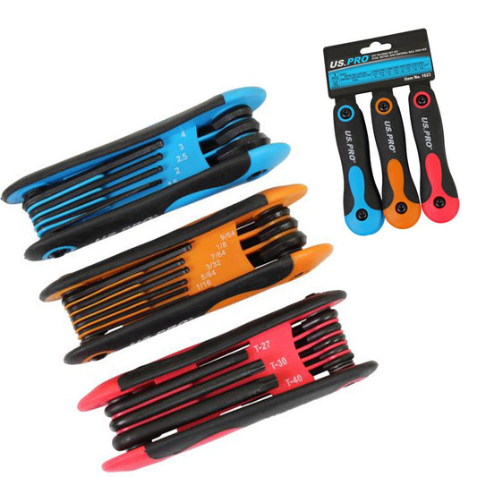 US Pro 3pc Folding Key Set Star Torx, Metric and Imperial Ball End Hex SAE