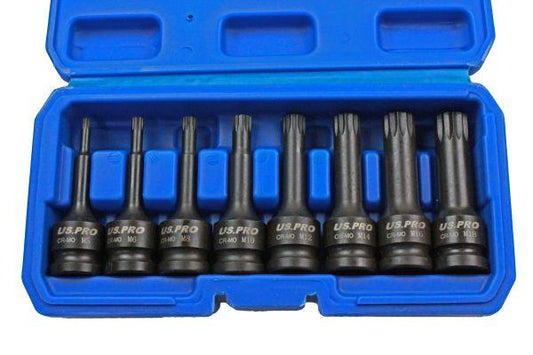 Us Pro by Bergen 8pc 1/2'' Impact spline Socket Bit Set M5-M18 Bits Cr-Mo 80mm length B1401