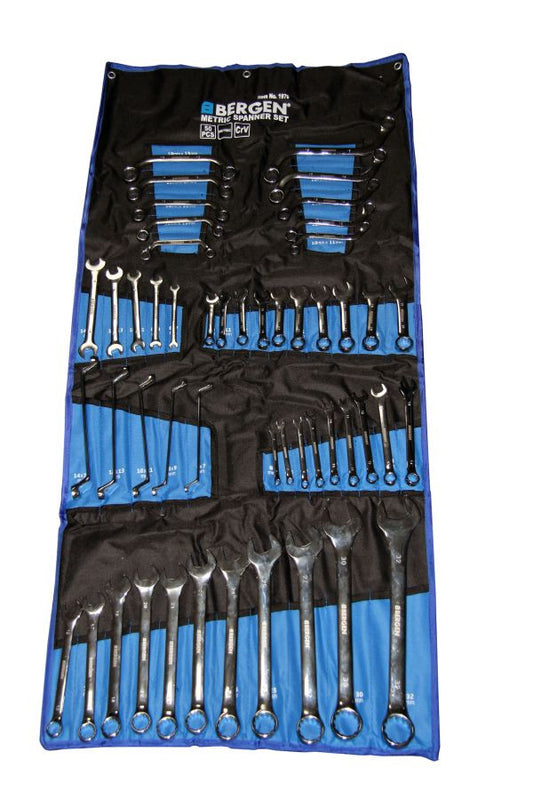 Bergen 50pc Metric Spanner Wrench Mixed Set, Stubby, Ring, Open B1970