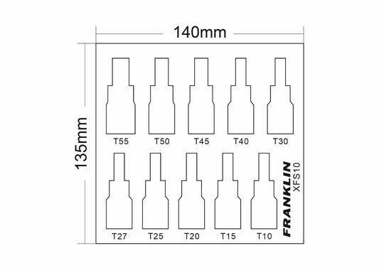 Franklin Tools Torx Star Key Bit Socket Set 10pc 3/8 Drive XFS10 Professional Quality